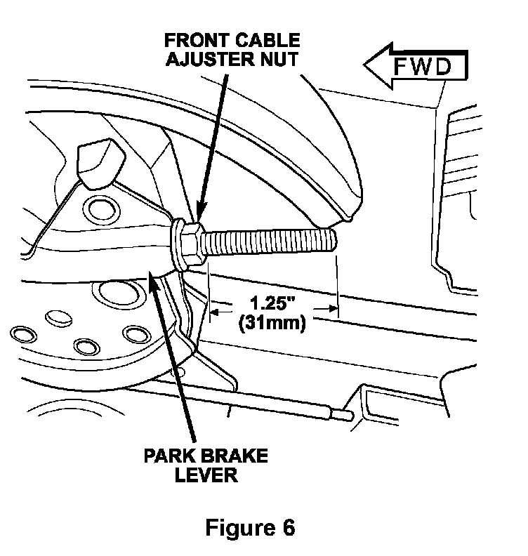 17. Tighten the front cable adjuster nut until there is 1.25 inches (31 mm) of threads showing (Figure 6).