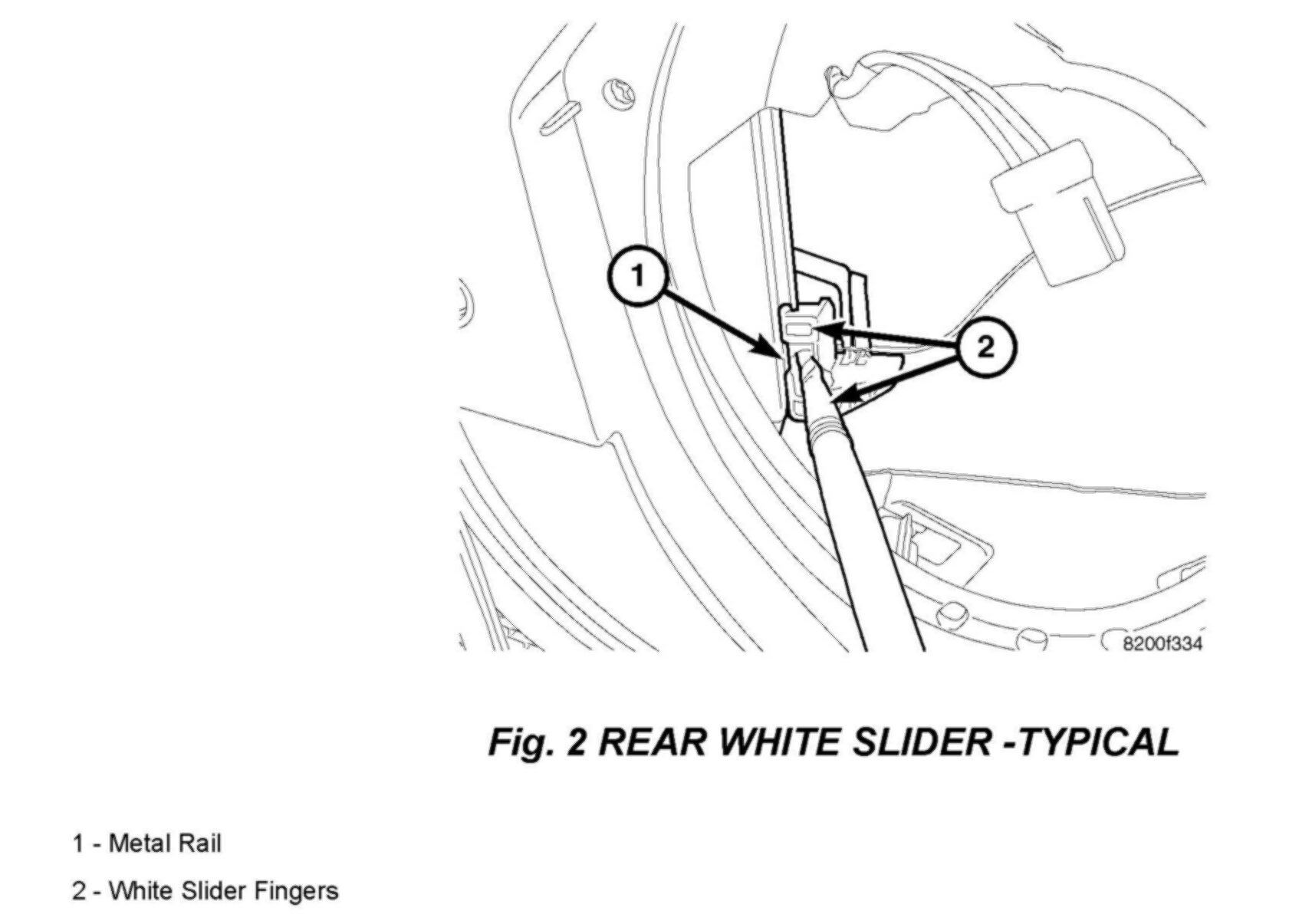 6. Apply 0.5 oz. of white lithium grease pn 68003883AA to metal rail between slider fingers (Fig 2).