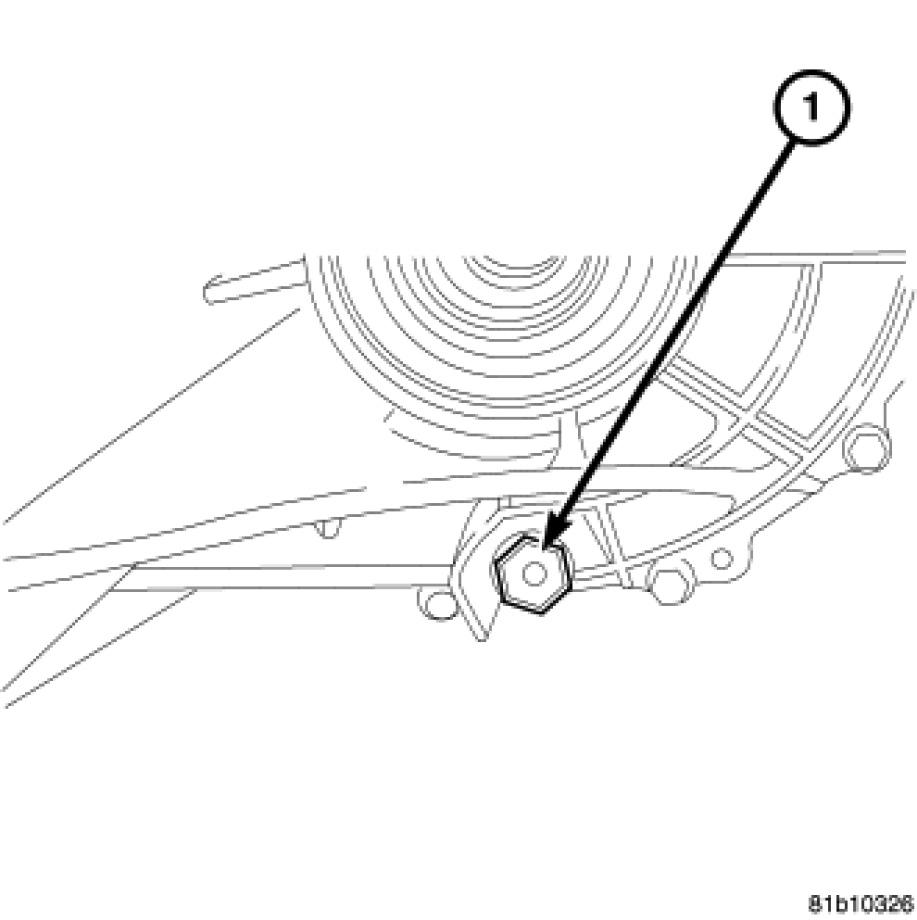 1. Remove drain plug (1) and allow transmission oil to drain.