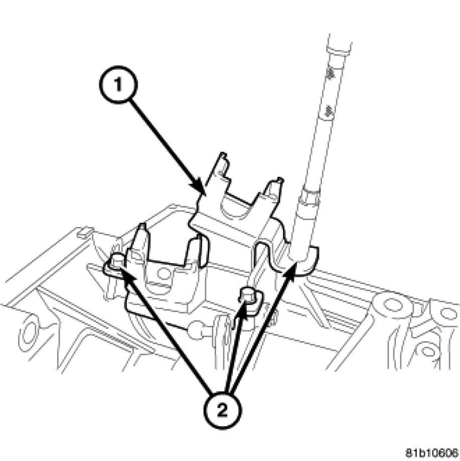 3. Remove the bolts (2) holding the shift cable bracket (1) to the transmission case.