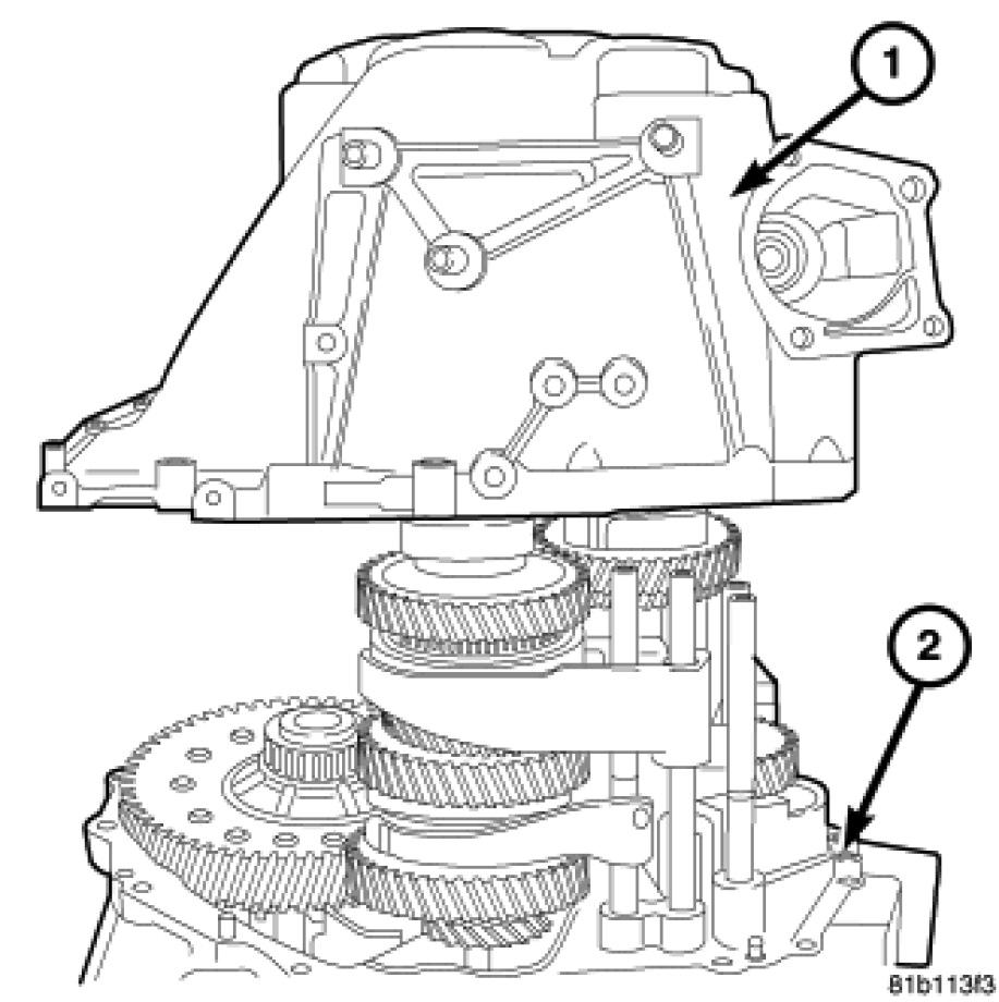 24. Remove the transmission case half (1) from the clutch housing (2).