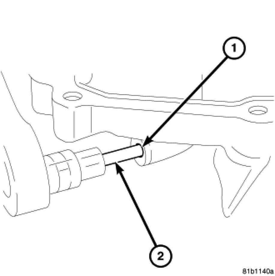 13. Loosen and remove shift guide pin (2).