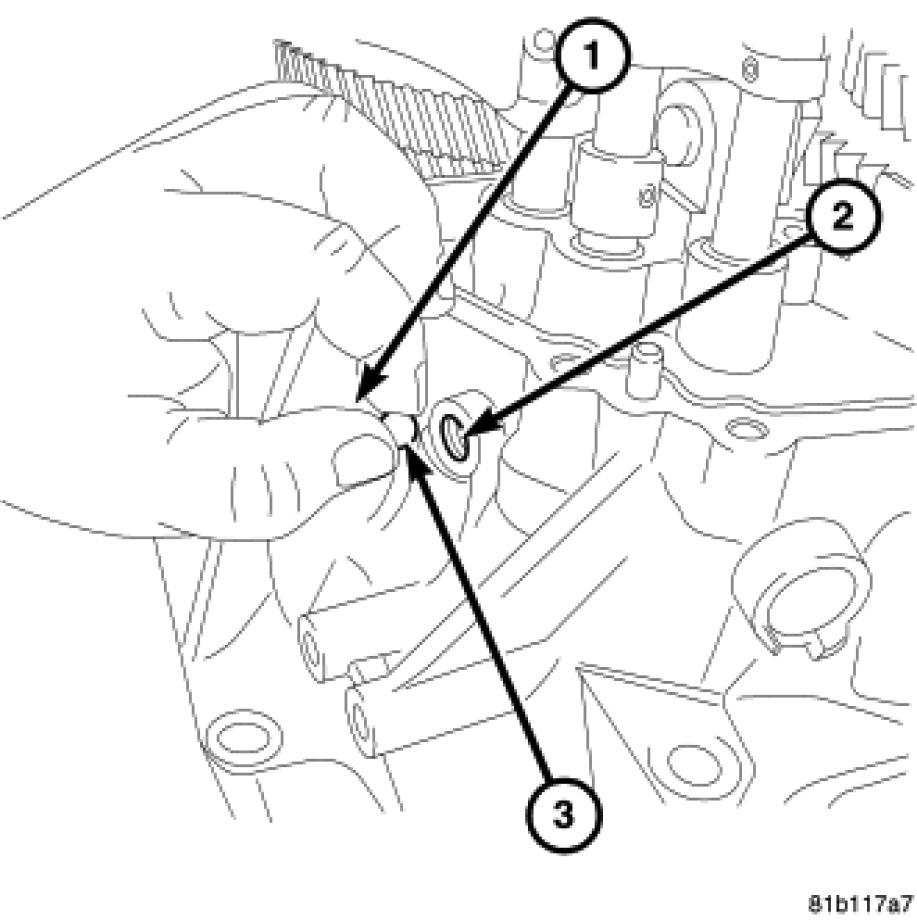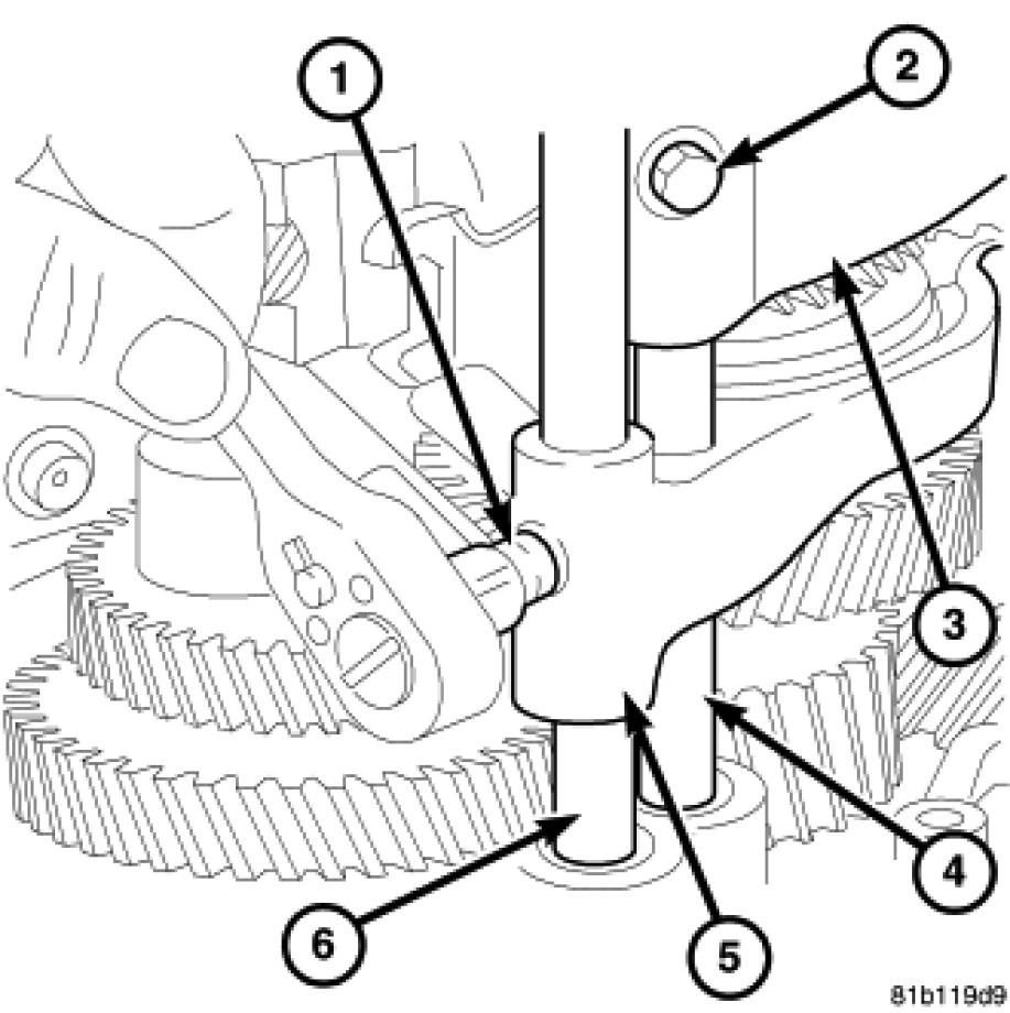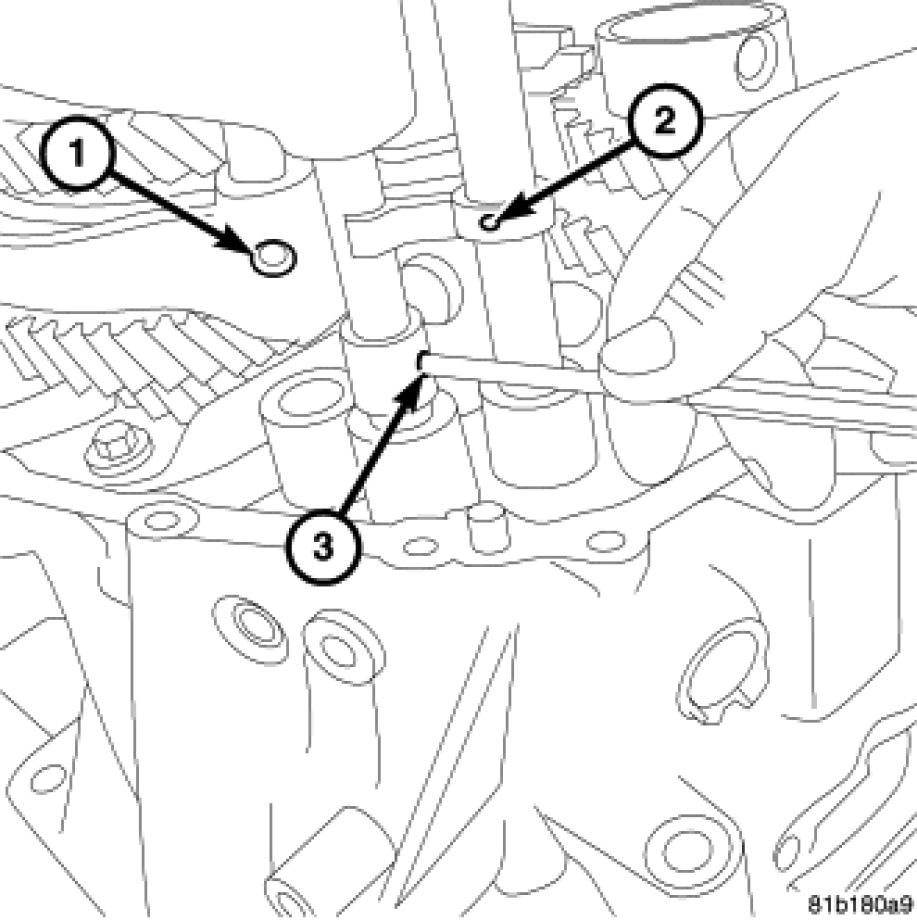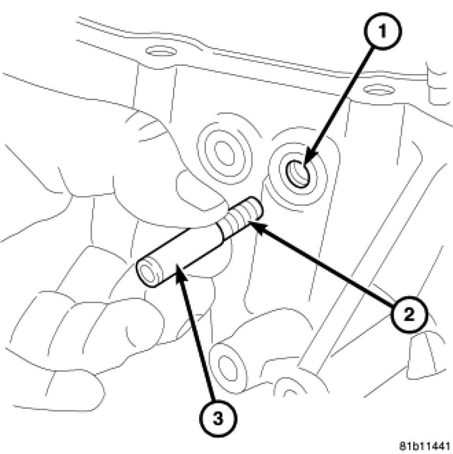 63. Remove the oil feed trough (1) from the case.