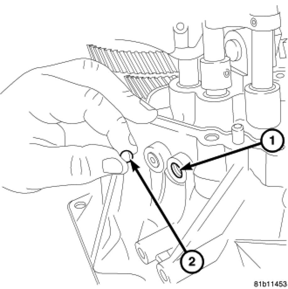 27. Remove fifth and sixth gear shift rail detent ball (2).
