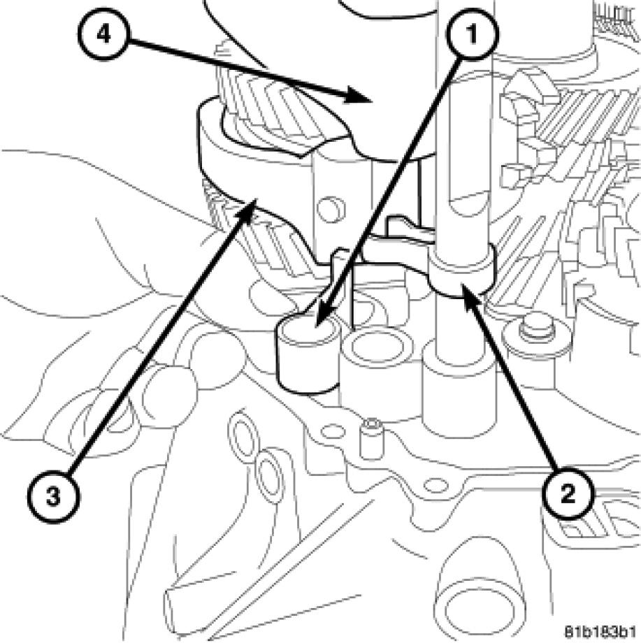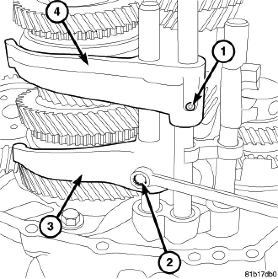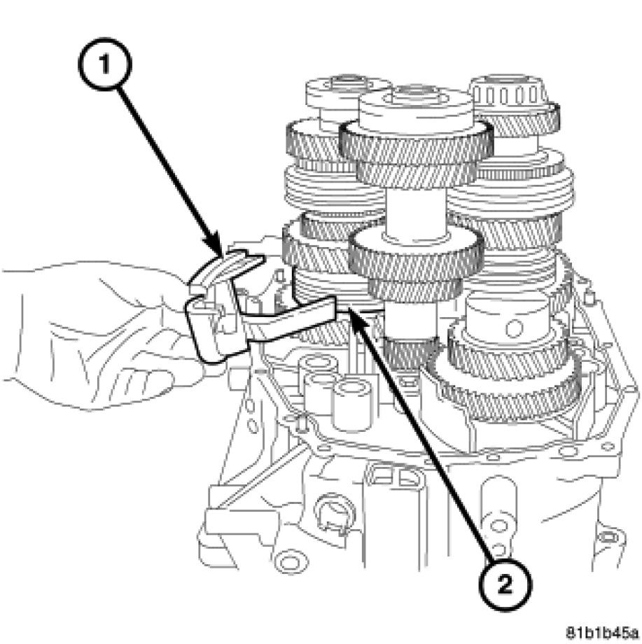 53. Remove the third and fourth gear shift fork (1) from synchronizer.