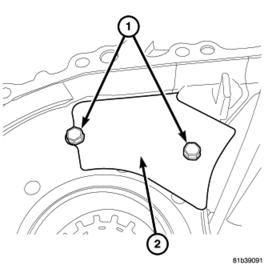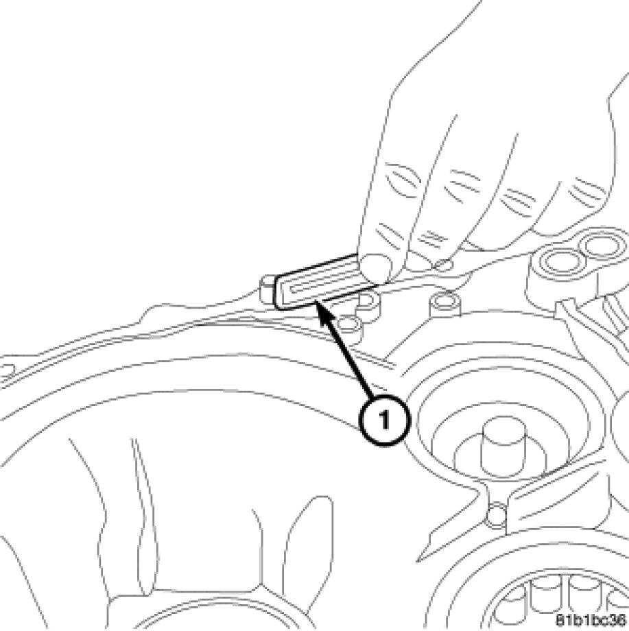 16. Remove the bolts (1) holding the transmission case to the clutch housing from inside the clutch housing.