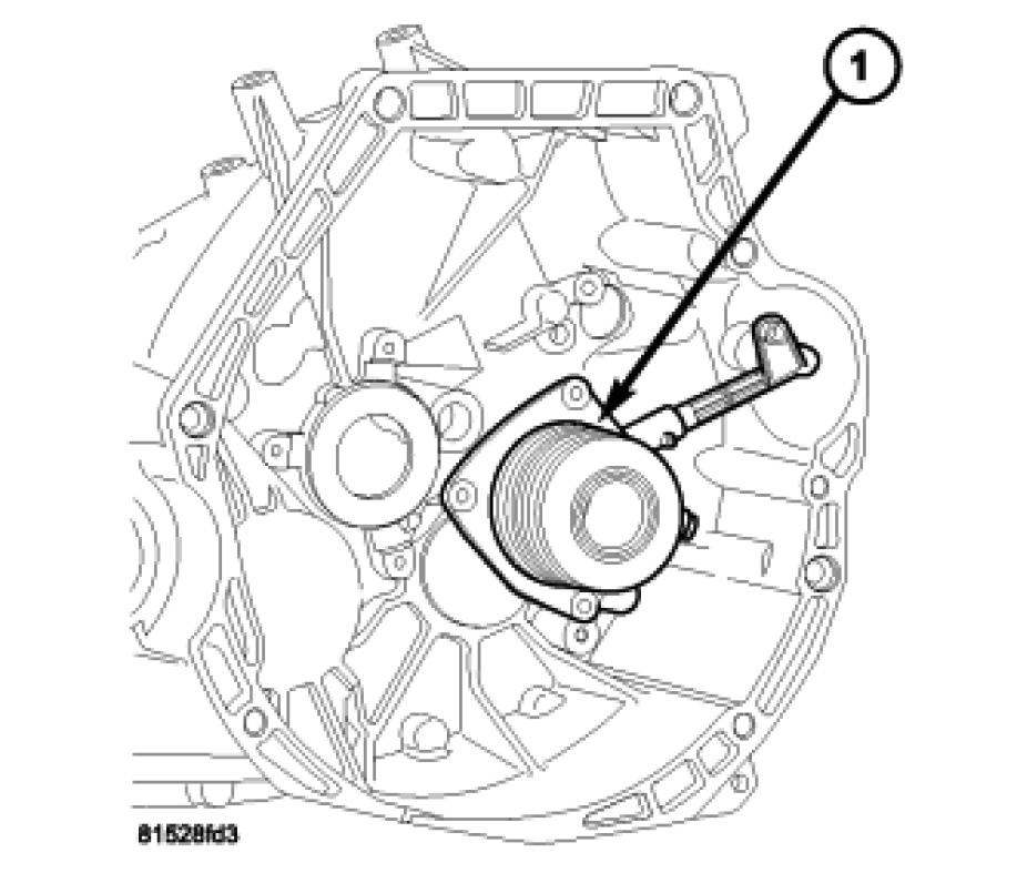 12. Install slave cylinder (1) to transaxle using new bolts.