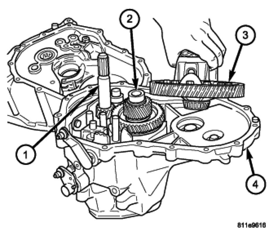 26. Install differential (3) into gear case (4).