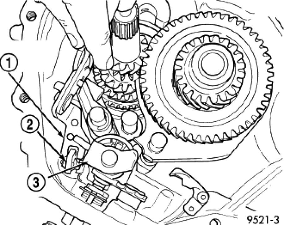 21. Insure reverse shift linkage is properly aligned in the reverse fork.