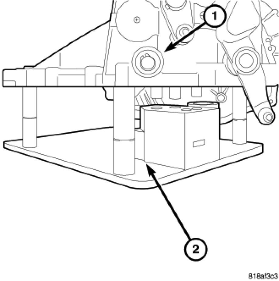 2. Install the output (1) and input (2) shafts onto bench fixture 6785.