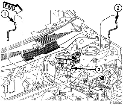 2. Install the correct brake tube (1 or 2) to the proportioning valve. Tighten the tube nut to 17 Nm (150 in. lbs.).