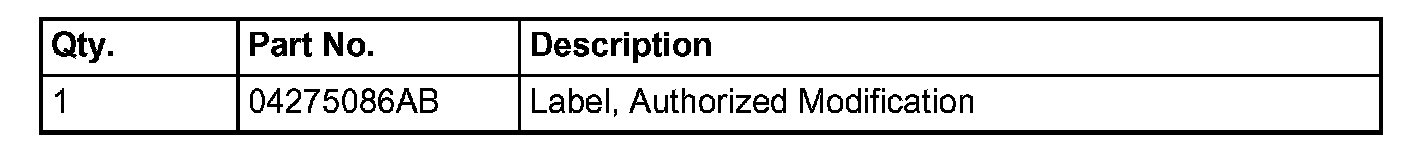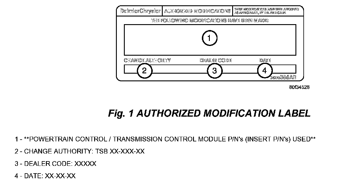 10. Type the necessary information on the "Authorized Modification Label" p/n 04275086AB and attach near the VECI label (Fig. 1).