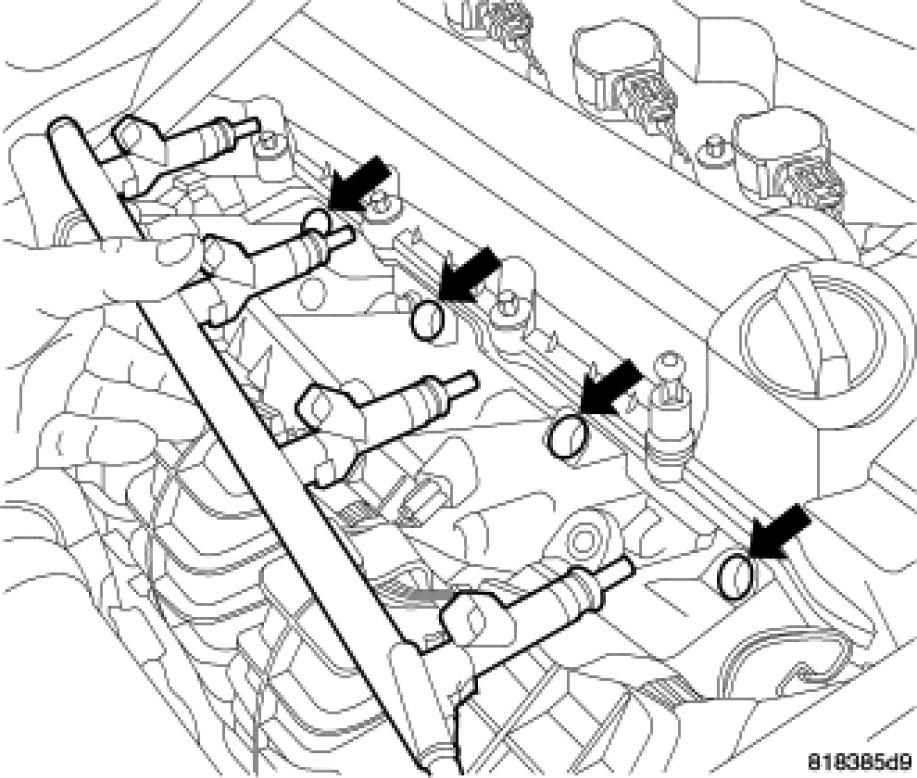 4. Apply a light coating of clean engine oil to the O-ring on the nozzle end of each injector.