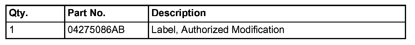 6. Type the necessary information on the "Authorized Modification Label" p/n 04275086AB and attach near the VECI label (Fig. 1).