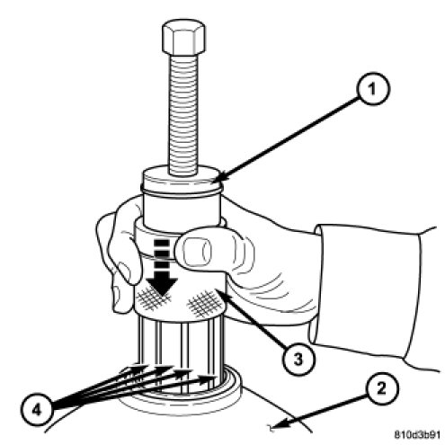 10. Slide the collar (3) on the Bearing Remover 9082 (1) downward over the fingers (4) of the tool.