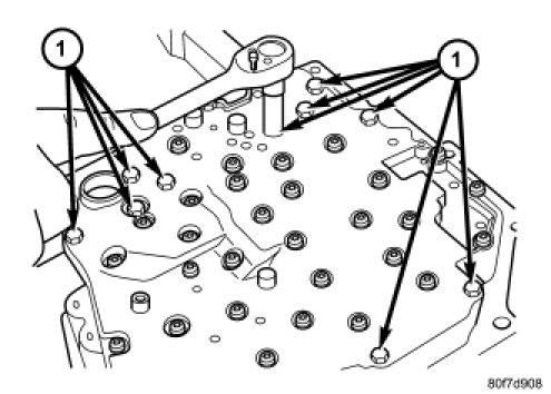 25. Remove valve body-to-case bolts (1).