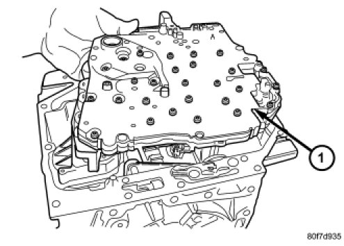 26. Remove valve body (1) from transmission.