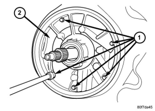 13. Remove the bolts that hold the extension housing (2) onto the transmission case.