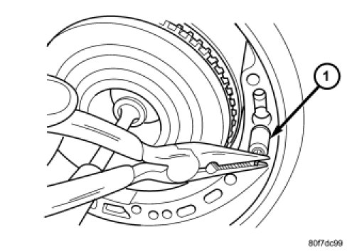 45. Remove the 2/4 clutch return spring (1).