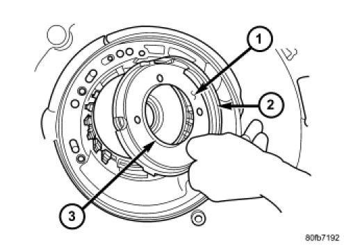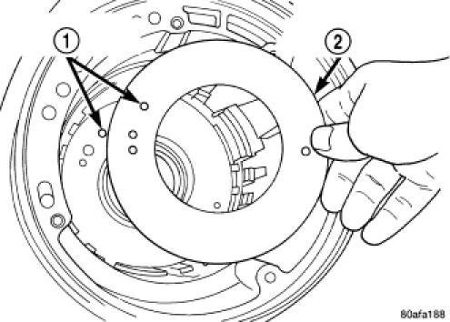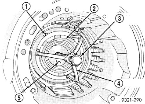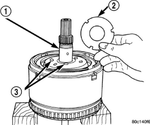 NOTE: The number seven needle bearing (1) has three antireversal tabs and is common with the number five and number two position. The orientation should allow the bearing to seat flat against the rear sun gear. A small amount of petrolatum can be used to hold the bearing to the rear sun gear.