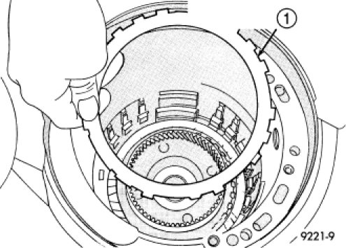 44. Remove the 2/4 clutch retainer (1).