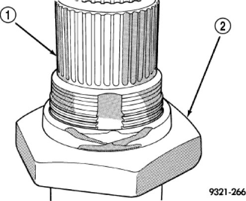 52. Using a die grinder or equivalent, grind the stakes in the shoulder of the shaft nut (2) as shown. Do not grind all the way through the nut and into the shaft. There are two stakes on each nut.
