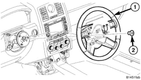 5. Remove the steering wheel retaining bolt (2), then slide the steering wheel (1) off the shaft.