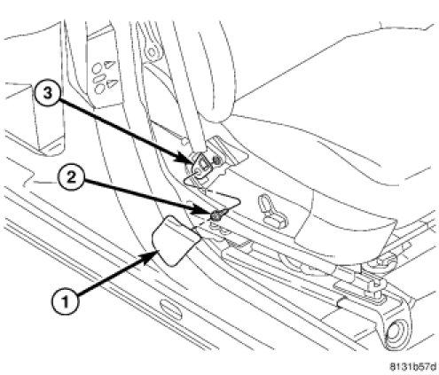 4. Remove the right side front seat with OCS sensor two rear attaching bolts (2) and (3).