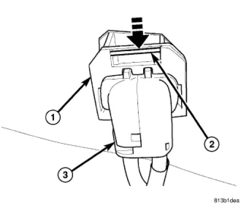 NOTE: To release sensor connector from body wiring harness connector (1) in following step, move retaining clip (2) as indicated here, then pull sensor connector (3) outward.