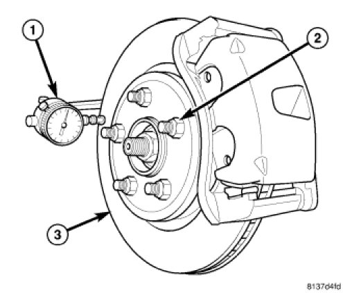 On-vehicle rotor runout is the combination of the individual runout of the hub face and the runout of the brake rotor (hub runout can be measured separately). To measure rotor runout on the vehicle:
