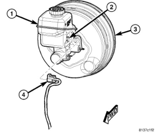 The brake fluid level sensor (2) is an integral part of the master cylinder fluid reservoir (1).
