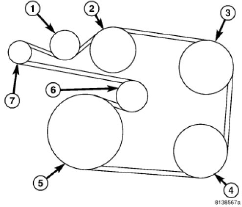CAUTION: When installing the serpentine accessory drive belt, the belt MUST be routed correctly. If not, the engine may overheat due to the water pump rotating in the wrong direction.