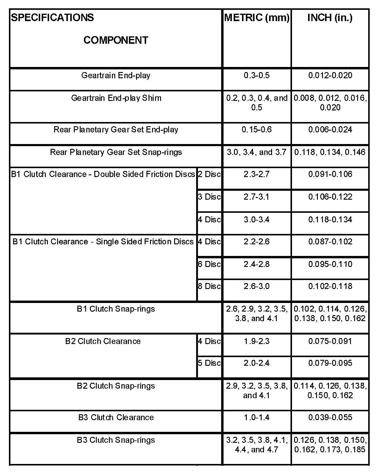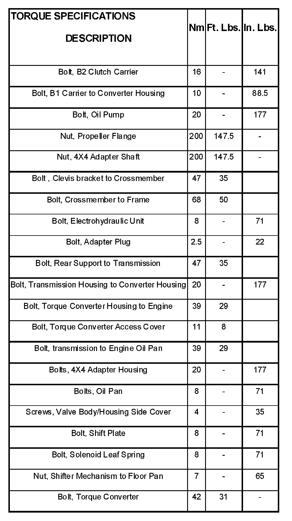 Torque Specifications: