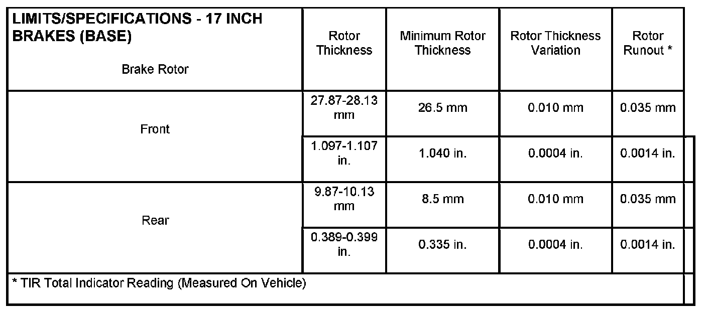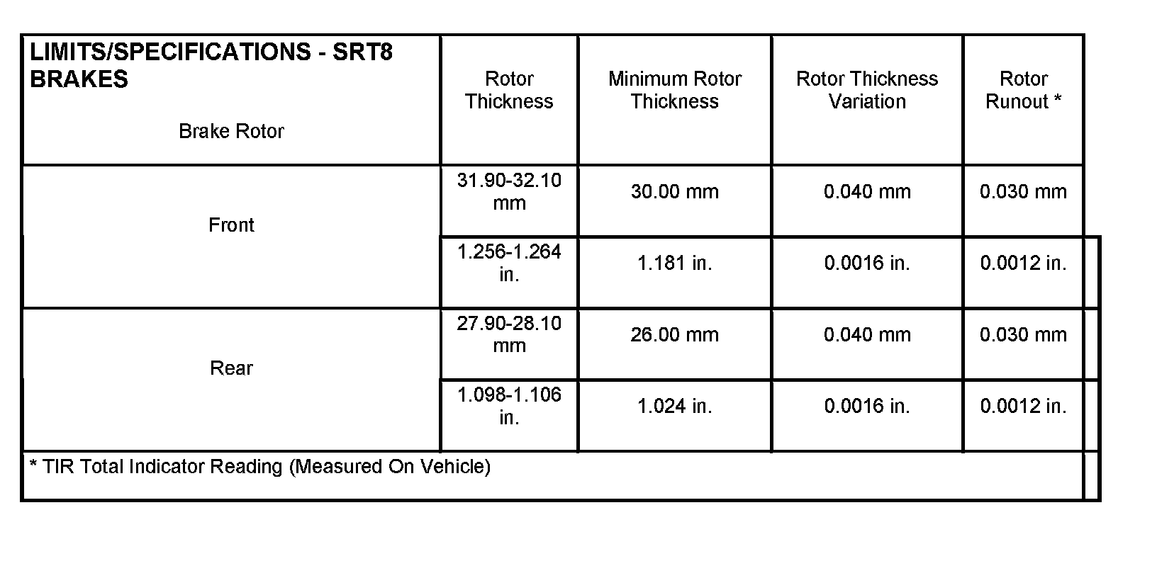 NOTE: When refacing a rotor, the required TIR (Total Indicator Reading) and thickness variation limits MUST BE MAINTAINED. Extreme care in the operation of rotor turning (machining) equipment is required.