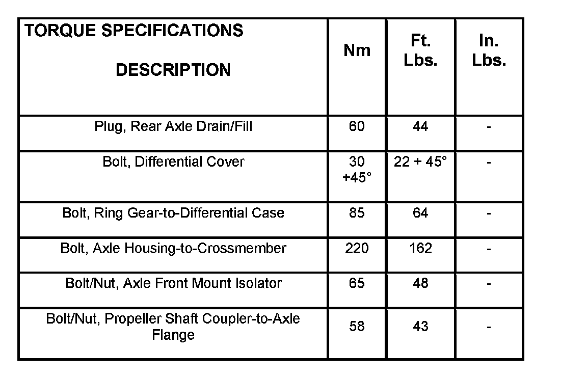 Torque Specifications: