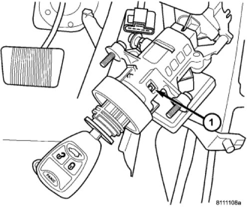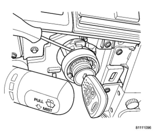 1. Install key in lock cylinder. Turn key to "ON" position (retaining tab on lock cylinder can be depressed) .