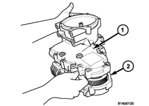 32. Position the transfer case cover (1) onto the transfer case (2).