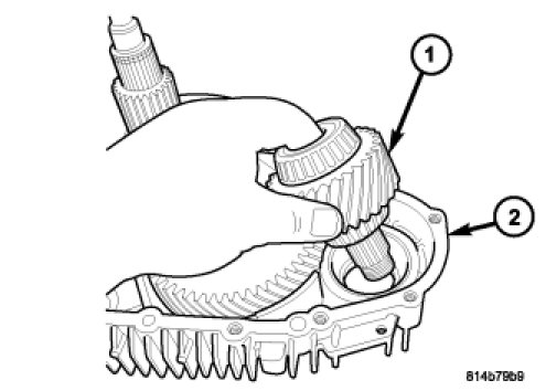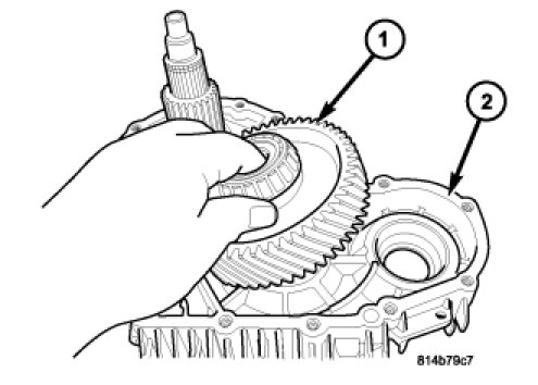 25. Install the planetary gear system (1) into the transfer case rear housing (2).