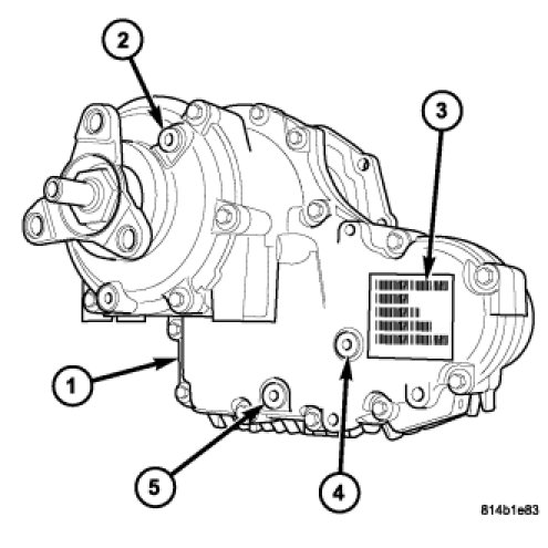 1. Place the transfer case so that it can be drained of any remaining fluid and remove the drain plug (5).
