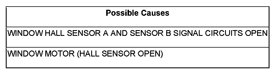 - Repair the Window Hall Sensor Signal circuits for opens.