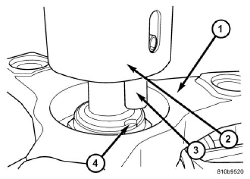 77. Rotate the Staking Tool 9078 (2) until the alignment pin (3) engages the output shaft notch (4).