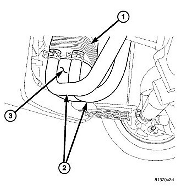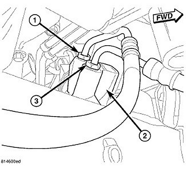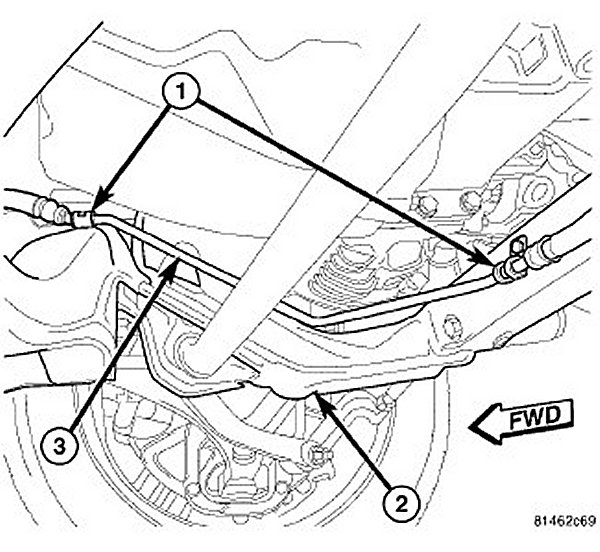 18. Position and install the power steering hose (3) to cradle hold downs (1).