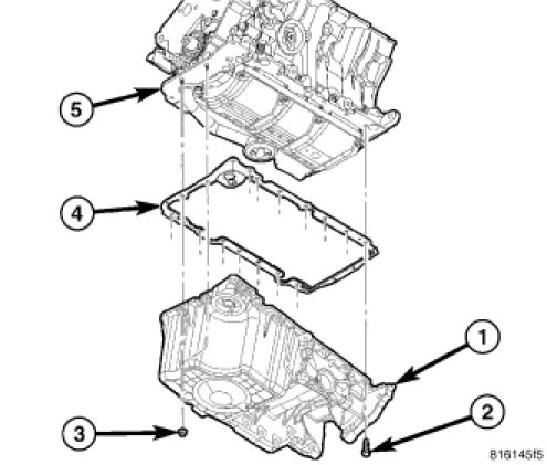 3. Install the oil pan gasket (4) to the engine block (5).