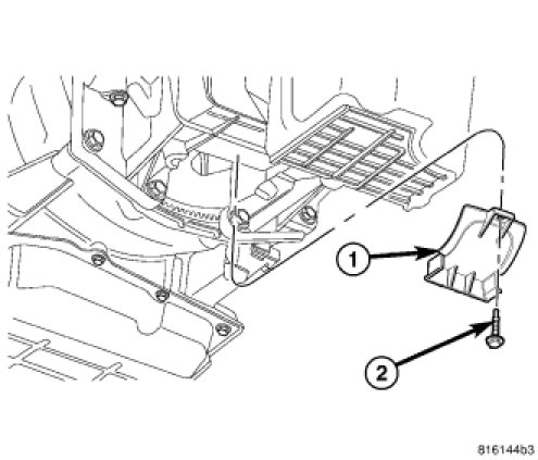 9. Install the flex plate inspection cover (1) and tighten the fastener (2) to 11 Nm (97 in.lbs.)