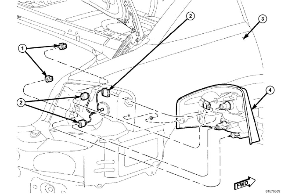 5. Disconnect wire connectors (2) from back of tail lamp (4).