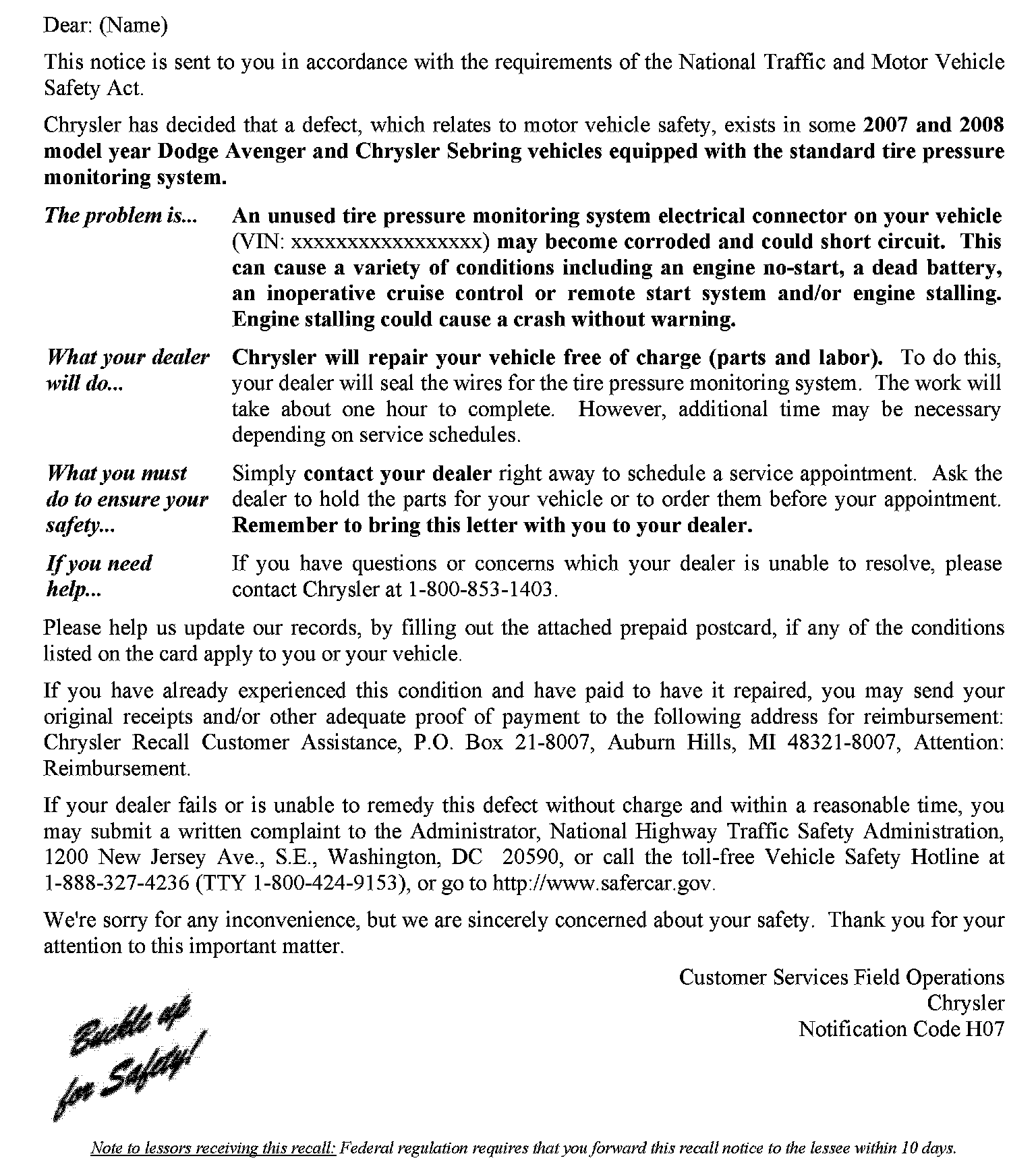 Recall - TPMS Connector Corrosion