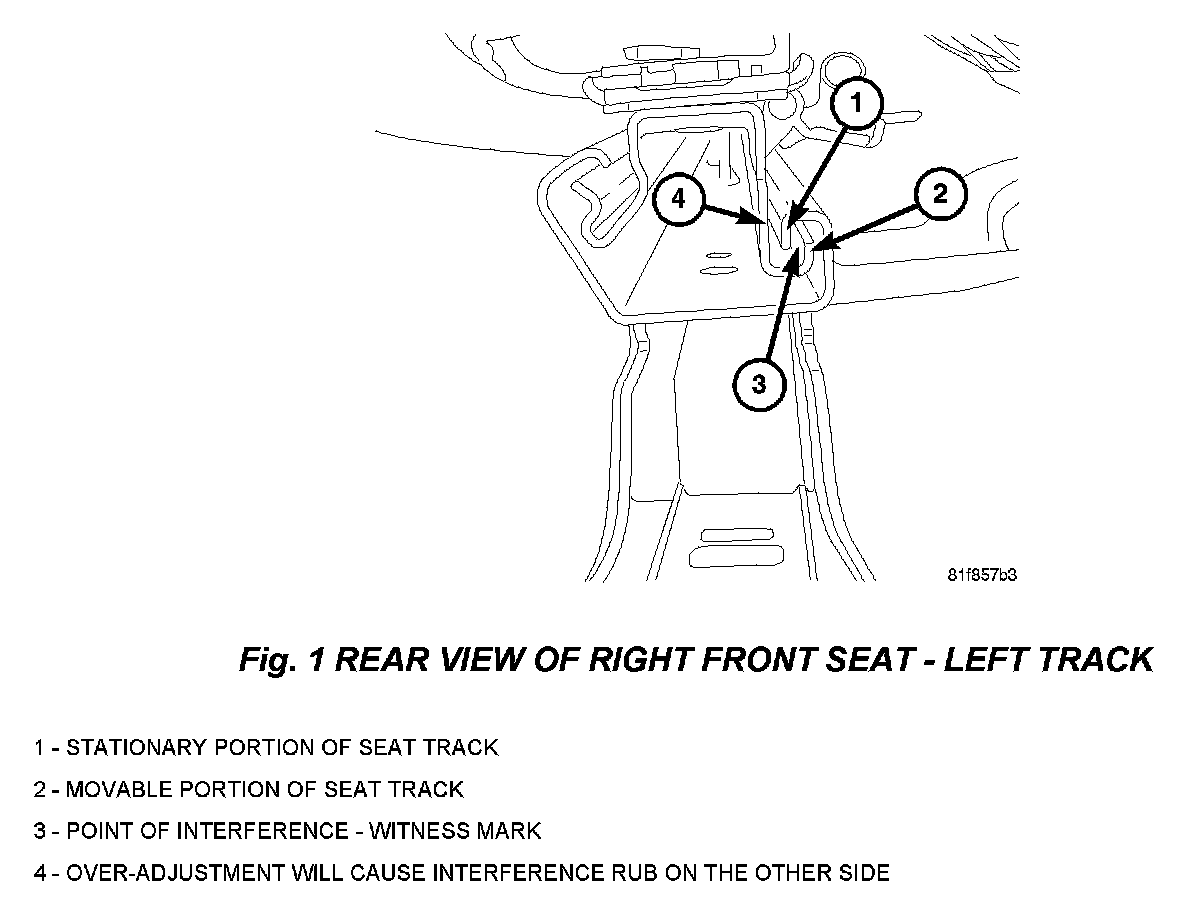 Only slight adjustment is necessary. Pry lip of seat track just enough to achieve 0.5mm (0.020 In) of clearance.