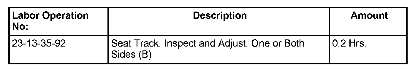 This bulletin involves inspecting the seat track for metal to metal contact. The stationary track may have a rolled in rear corner causing interference. If this corner is contacting movable track, track adjustment is necessary.