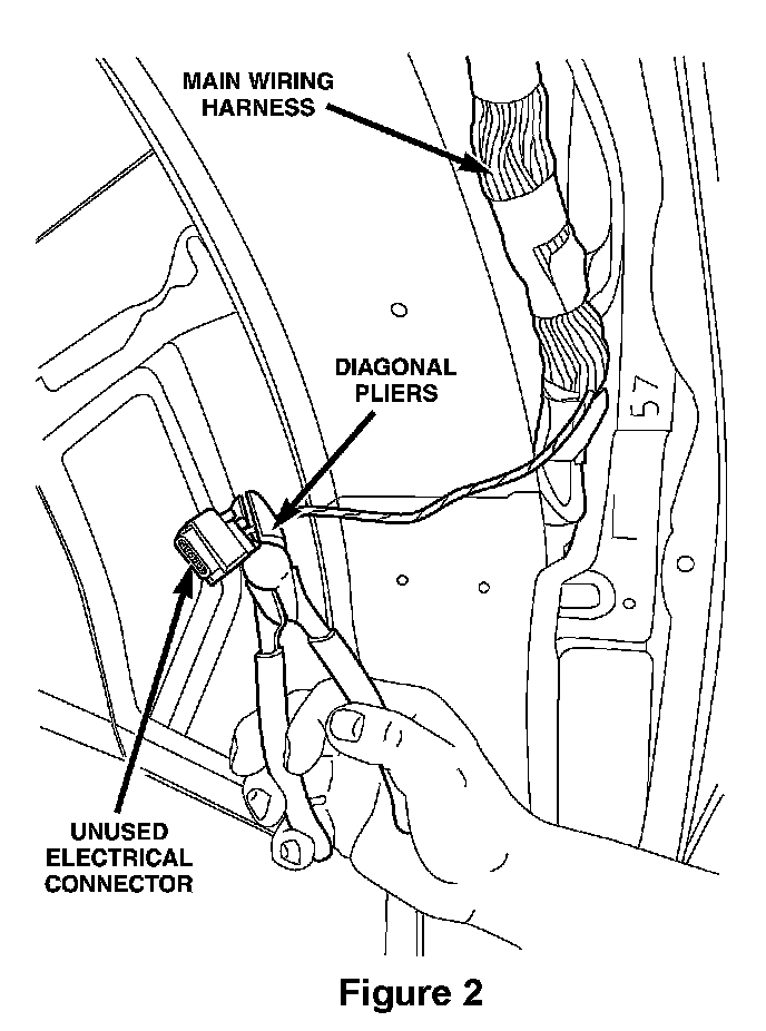 7. Using diagonal pliers, cut off and discard the 6-cavity unused tire pressure monitor electrical connector (Figure 2).