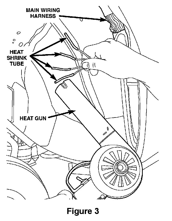9. Place a piece of heat shrink tube over each individual wire end and heat the shrink tube until glue comes out of both ends of the shrink tube (Figure 3).